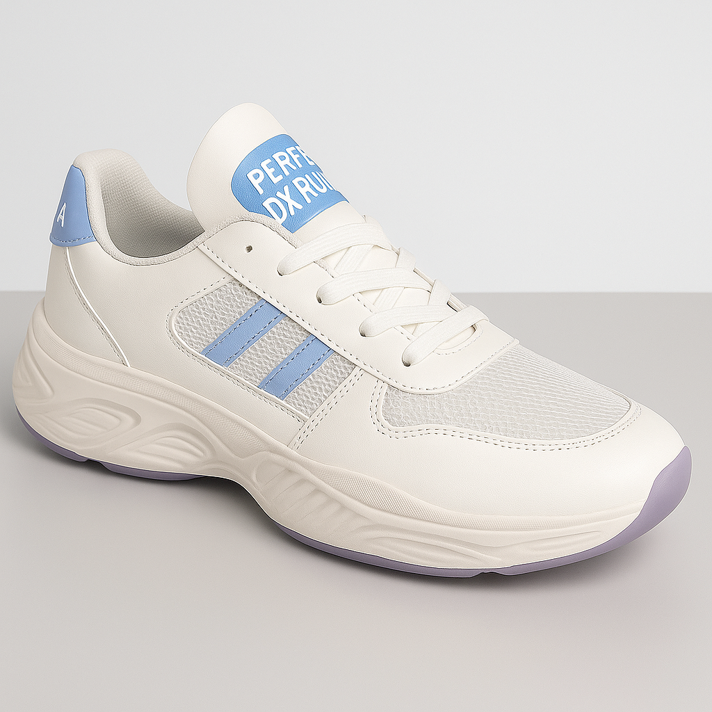 Made from premium synthetic leather and breathable mesh, these sneakers offer lightweight comfort and improved airflow for all-day wear. The soft blue stripe design adds a touch of cool, while the ergonomic sole ensures shock absorption and superior cushioning during walks, workouts, or travel.
