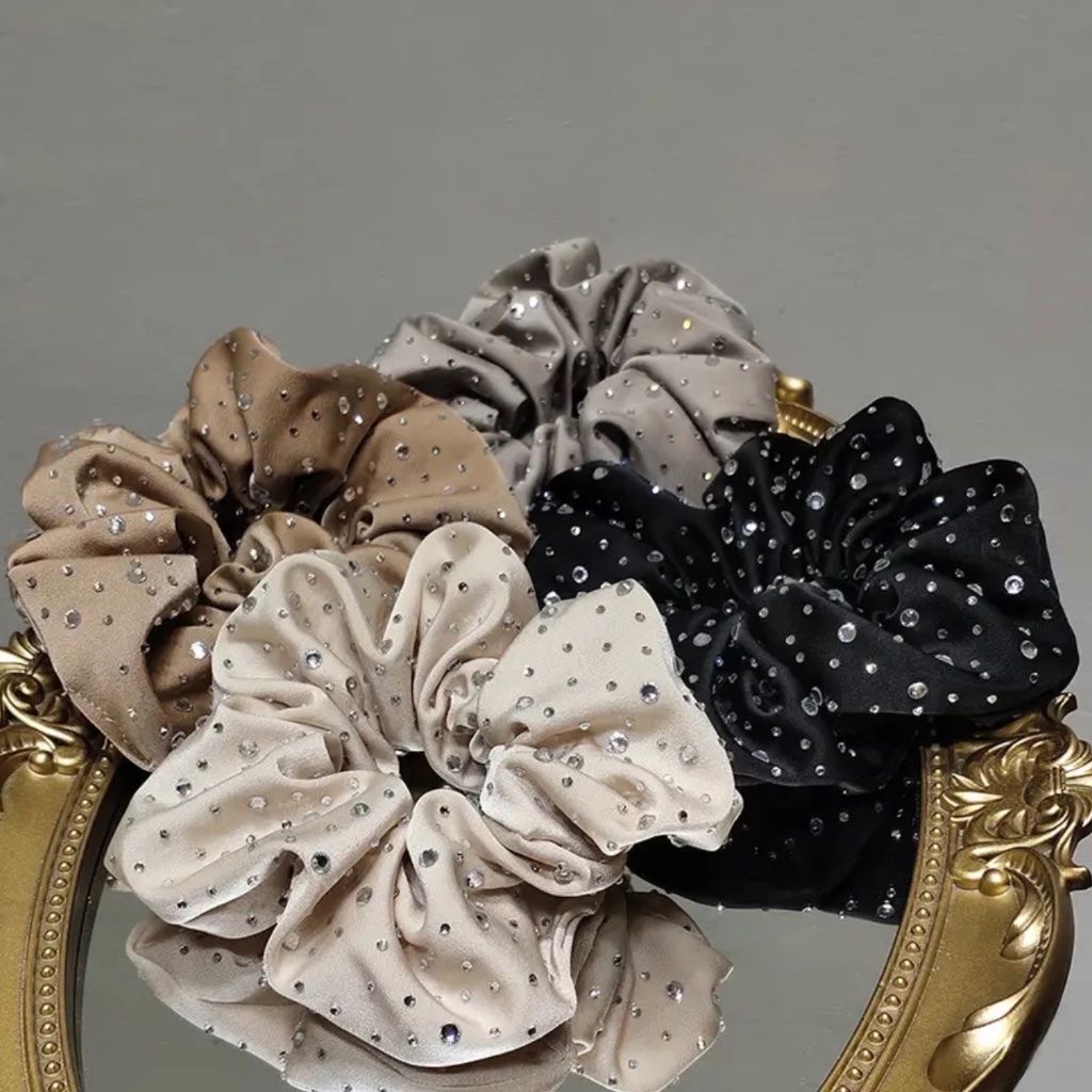 Available in classic, neutral tones that effortlessly complement any outfit, these glamorous scrunchies are the perfect accessory to elevate your everyday hairstyle or complete a polished, dressed-up look. Durable, lightweight, and gentle on hair, they combine beauty and functionality in one chic accessory.