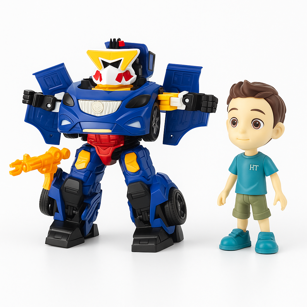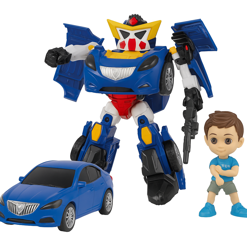 This 2-in-1 transforming robot switches effortlessly between a sleek blue sports car and a heroic robot warrior. The set includes a cute boy companion figure, adding excitement and story depth to every adventure.