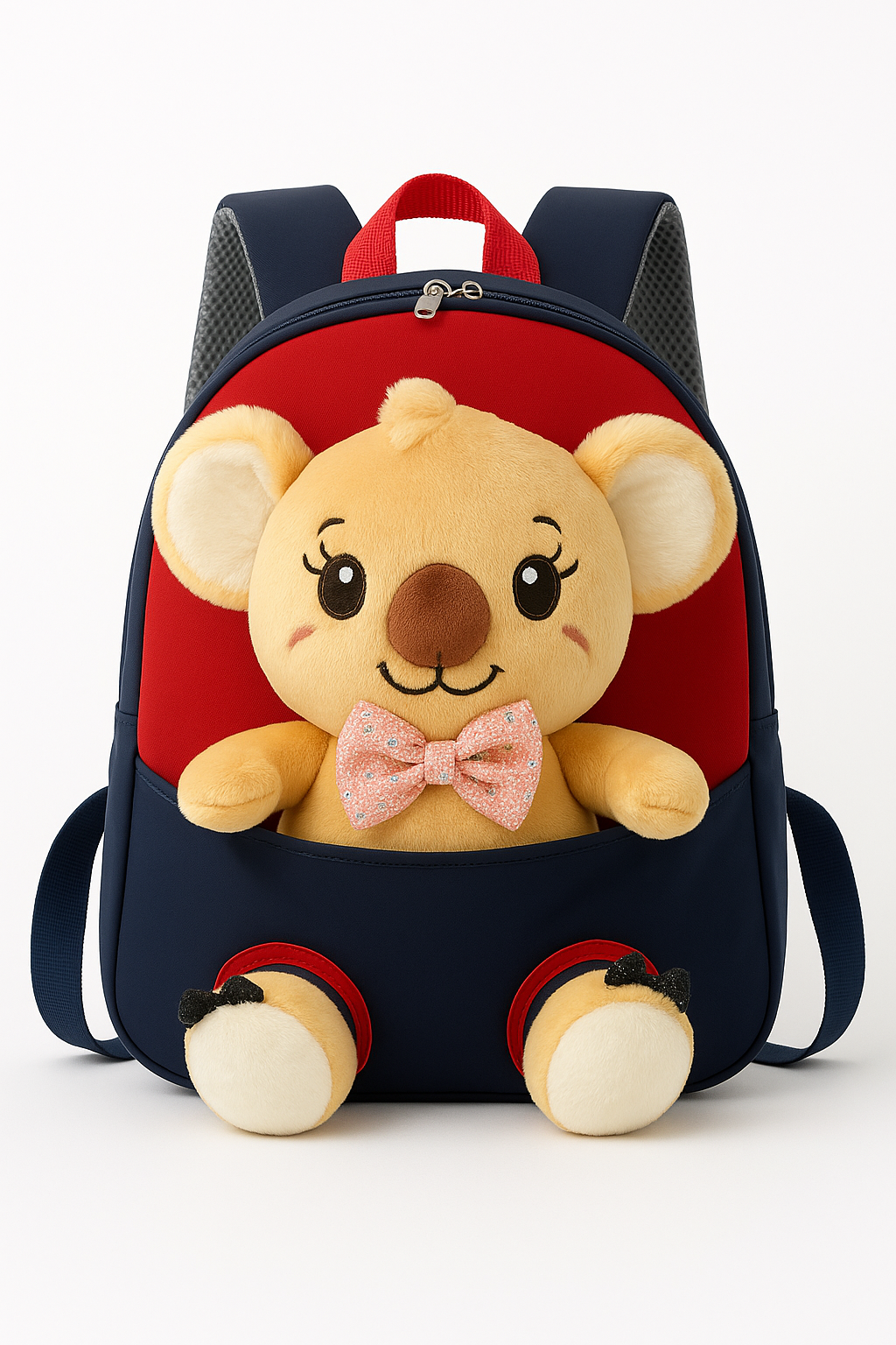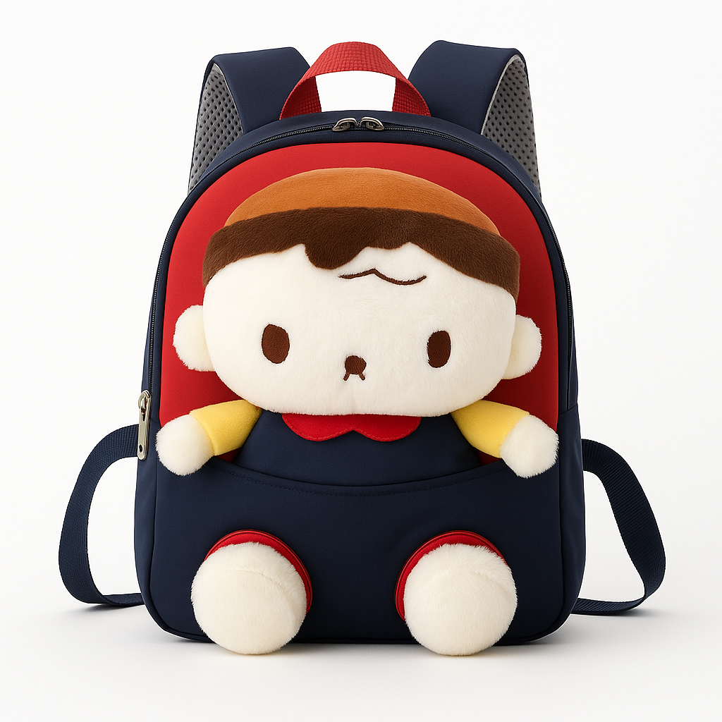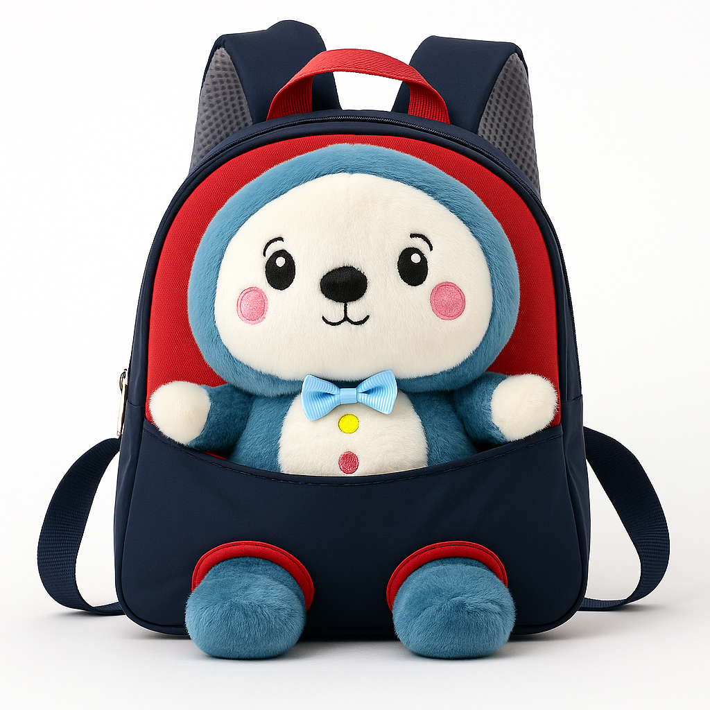 The soft plush bear adds charm and comfort, while the spacious interior fits snacks, toys, books, and essentials. Padded straps ensure easy carrying for little shoulders. A perfect mix of style, comfort, and fun!